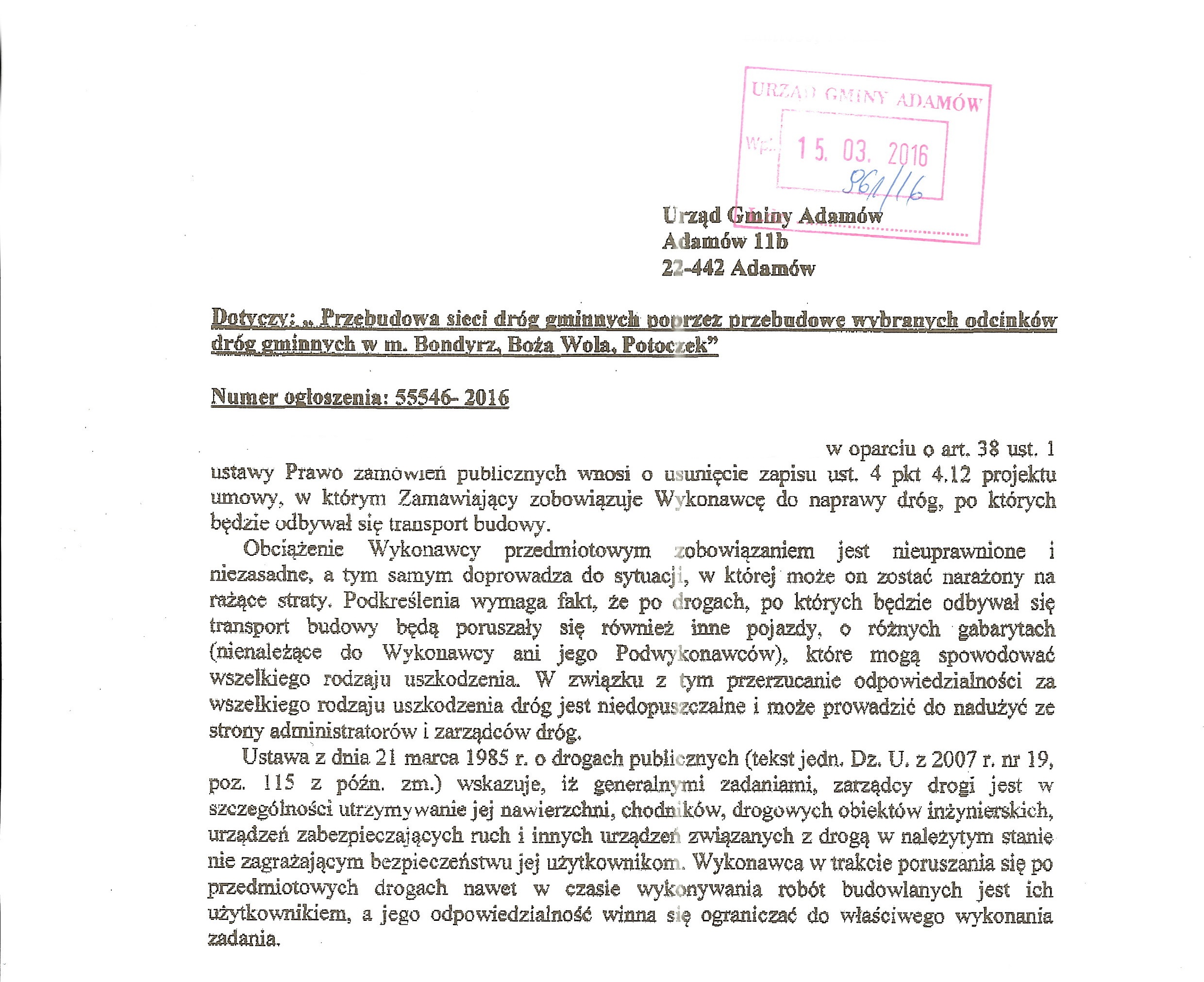 Adamów, 2016-03-25 RIG 271.1/5/.2016